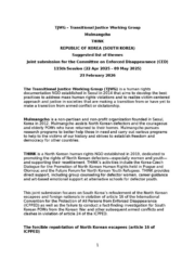 TJWG – Transitional Justice Working Group Mulmangcho THINK REPUBLIC OF KOREA (SOUTH KOREA) Suggested list of themes Joint submission for the Committee on Enforced Disappearance (CED) 115th Session (22 Apr 2025 - 09 May 2025) 23 February 2026 The Transitional Justice Working Group (TJWG) is a human rights documentation...