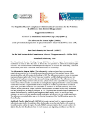 The Republic of Korea’s Compliance with International Convention for the Protection of All Persons from Enforced Disappearance Suggested List of Themes Submitted by Transitional Justice Working Group (TJWG), The Advocates for Human Rights (TAHR), a non-governmental organization in special consultative status with ECOSOC since 1996, and Anti-Death Penalty Asia Network...